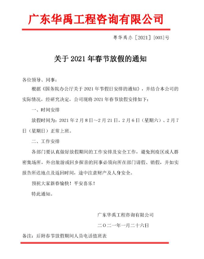 关于2021年春节放假的通知