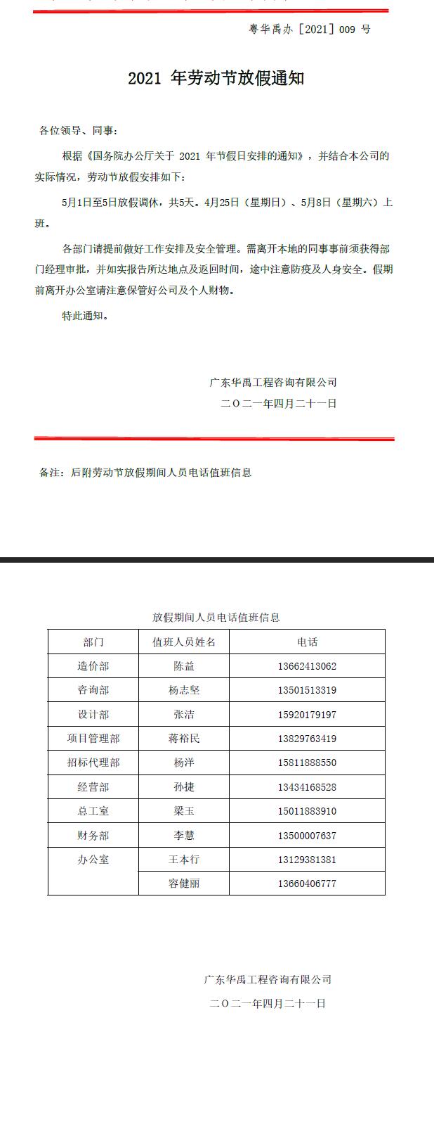 关于2021年劳动节放假通知