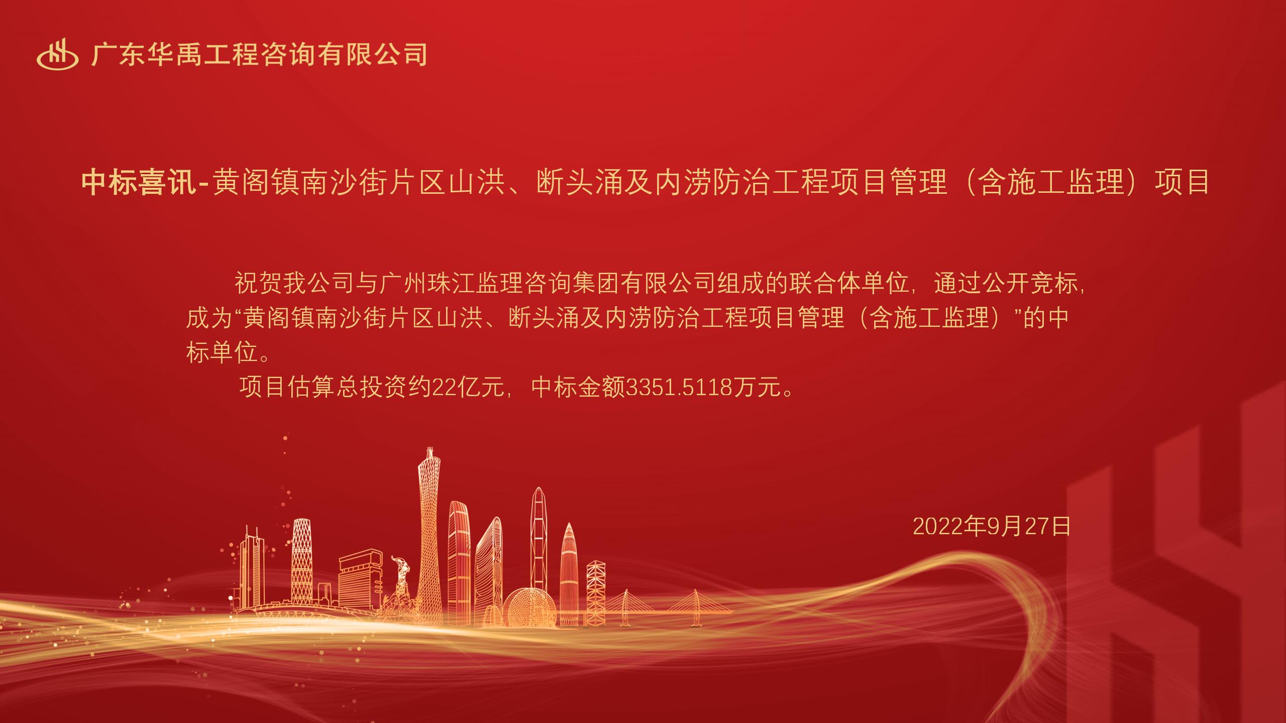 中标喜讯 - 黄阁镇南沙街片区山洪、断头涌及内涝防治工程项目管理(含施工监理)