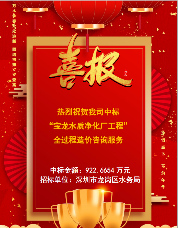 中标喜讯 - “宝龙水质净化工程”全过程造价咨询服务