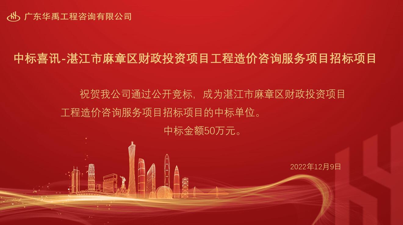 中标喜讯-湛江市麻章区财政投资项目工程造价咨询服务项目招标项目