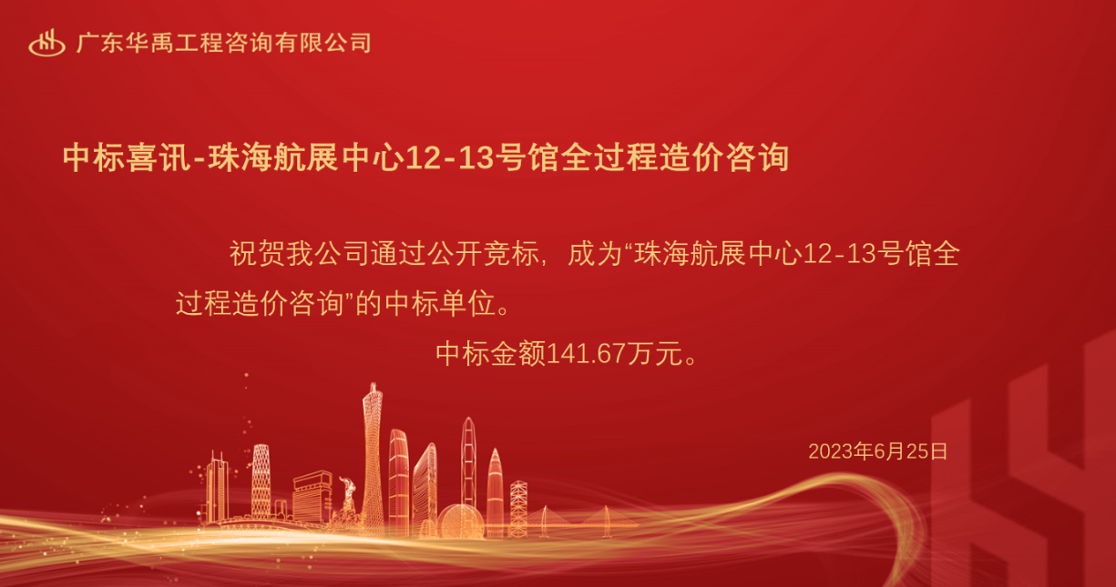 中标喜讯-珠海航展中心12-13号馆全过程造价咨询