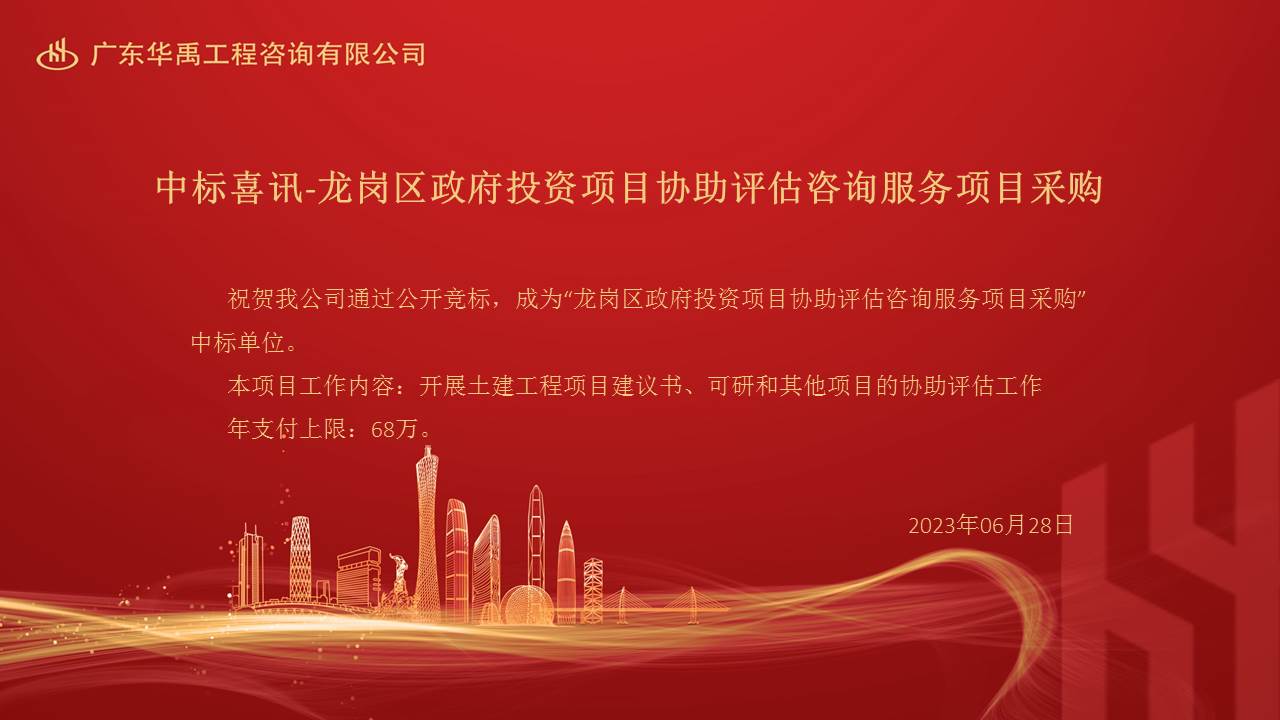 中标喜讯-龙岗区政府投资项目协助评估咨询服务项目采购