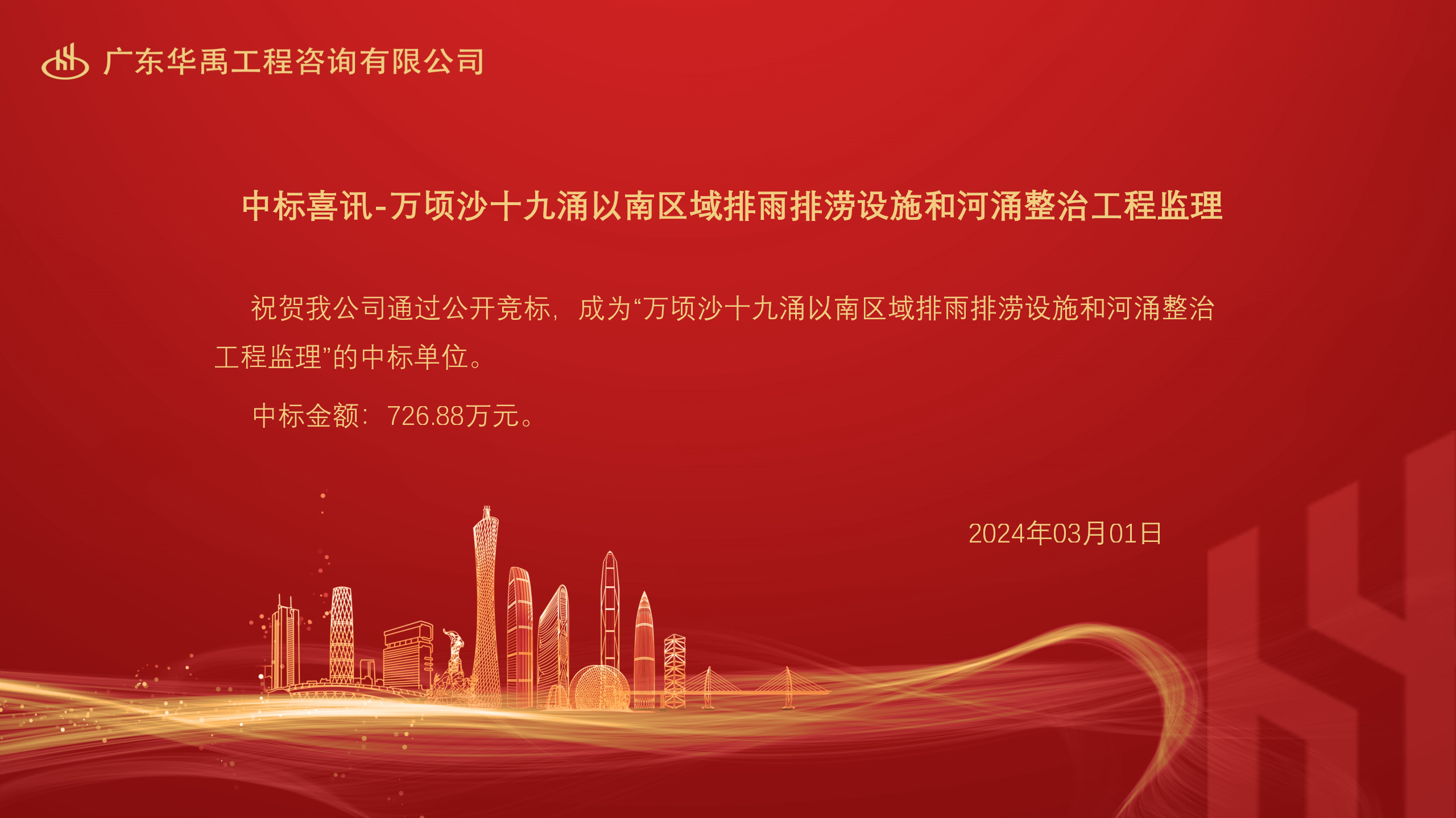 中标喜讯-万顷沙十九涌以南区域排雨排涝设施和河涌整治工程监理