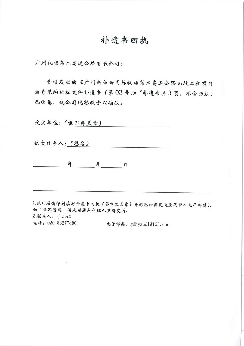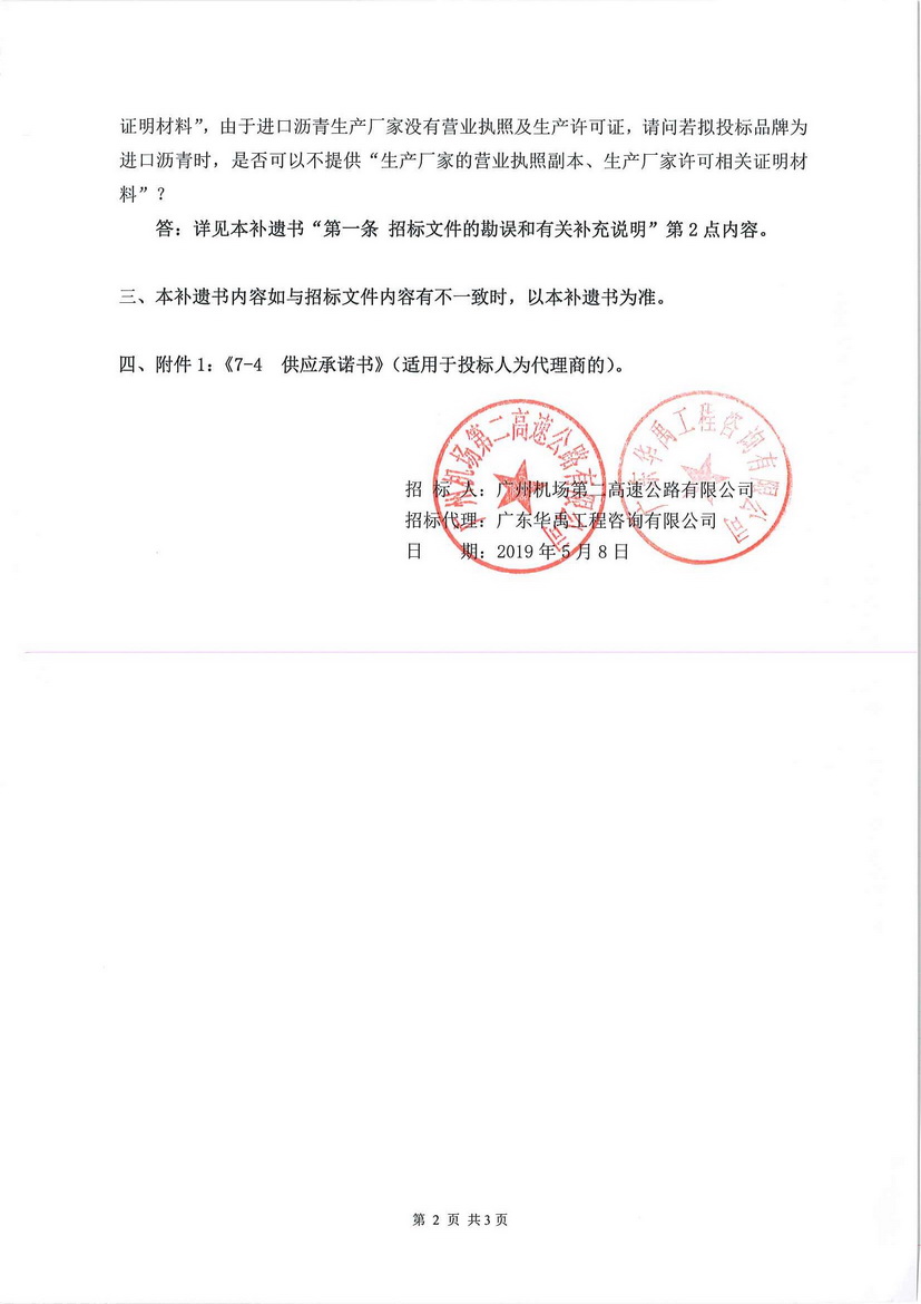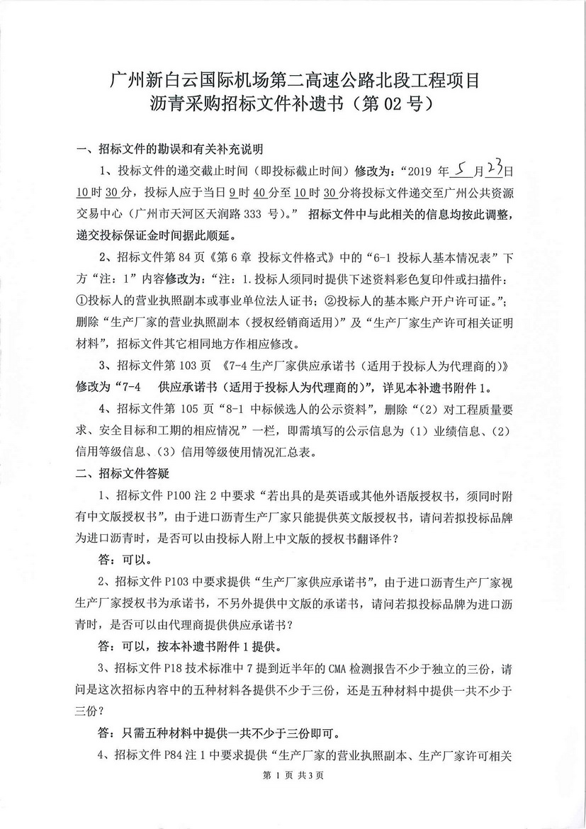 补遗书 - 广州新白云国际机场第二高速公路北段工程项目沥青采购补遗书02号