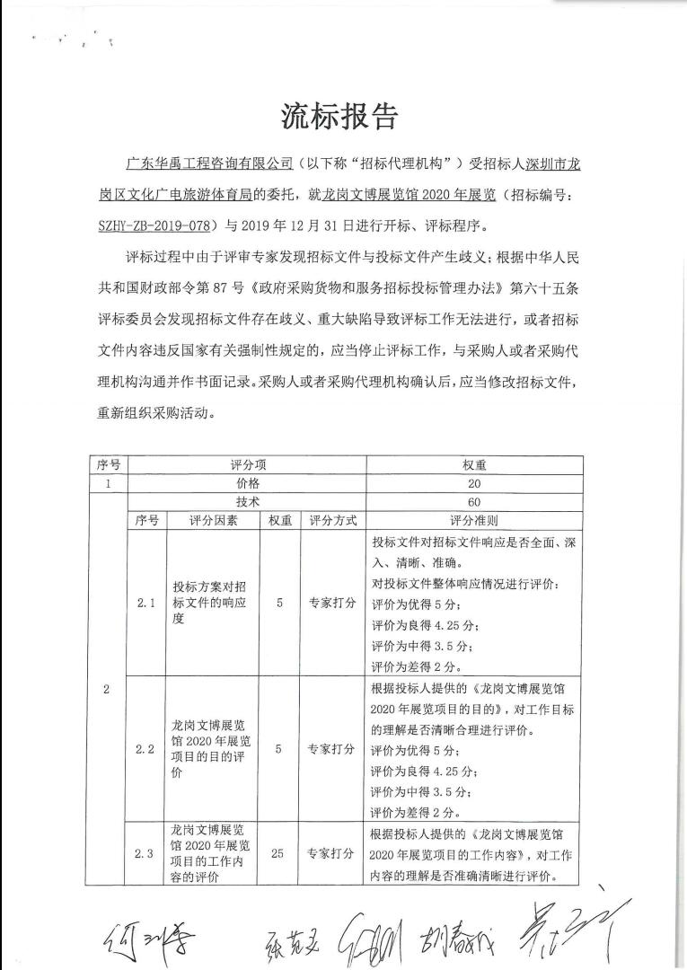 流标公告 - 龙岗文博展览馆2020年展览流标公告