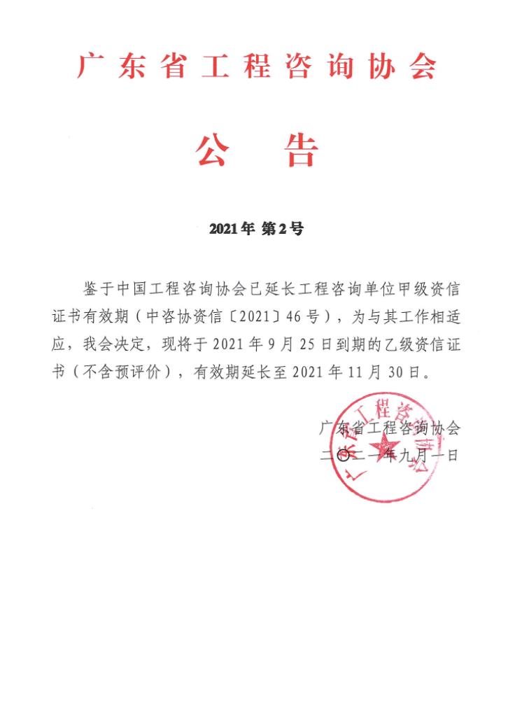 【转】广东省工程咨询协会关于延长工程咨询单位乙级资信证书有效期的公告