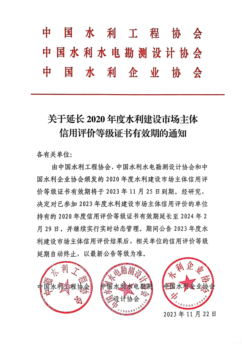【转】关于延长2020年度水利建设市场主体信用评价等级证书有效期的通知