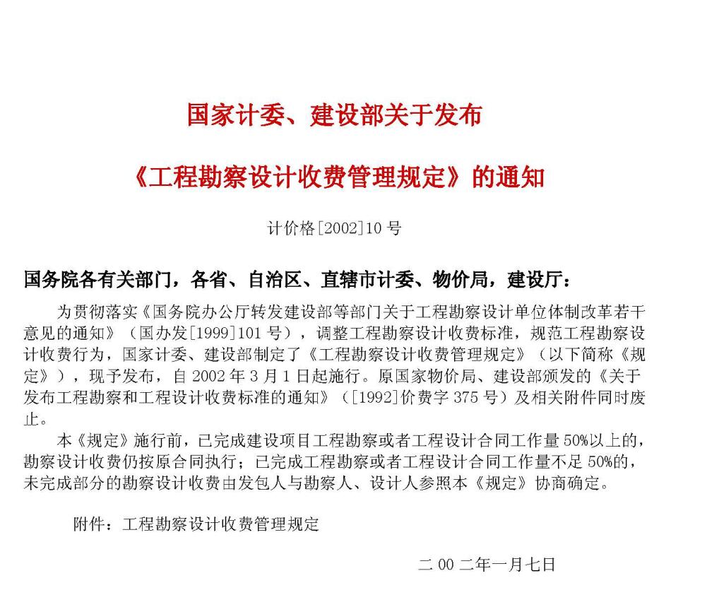 《工程勘察设计收费标准》(2002年修订本)